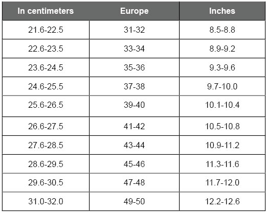 Measure the distance and compare it with the size chart below. Use the measurement of your longest foot when choosing what size to order. |